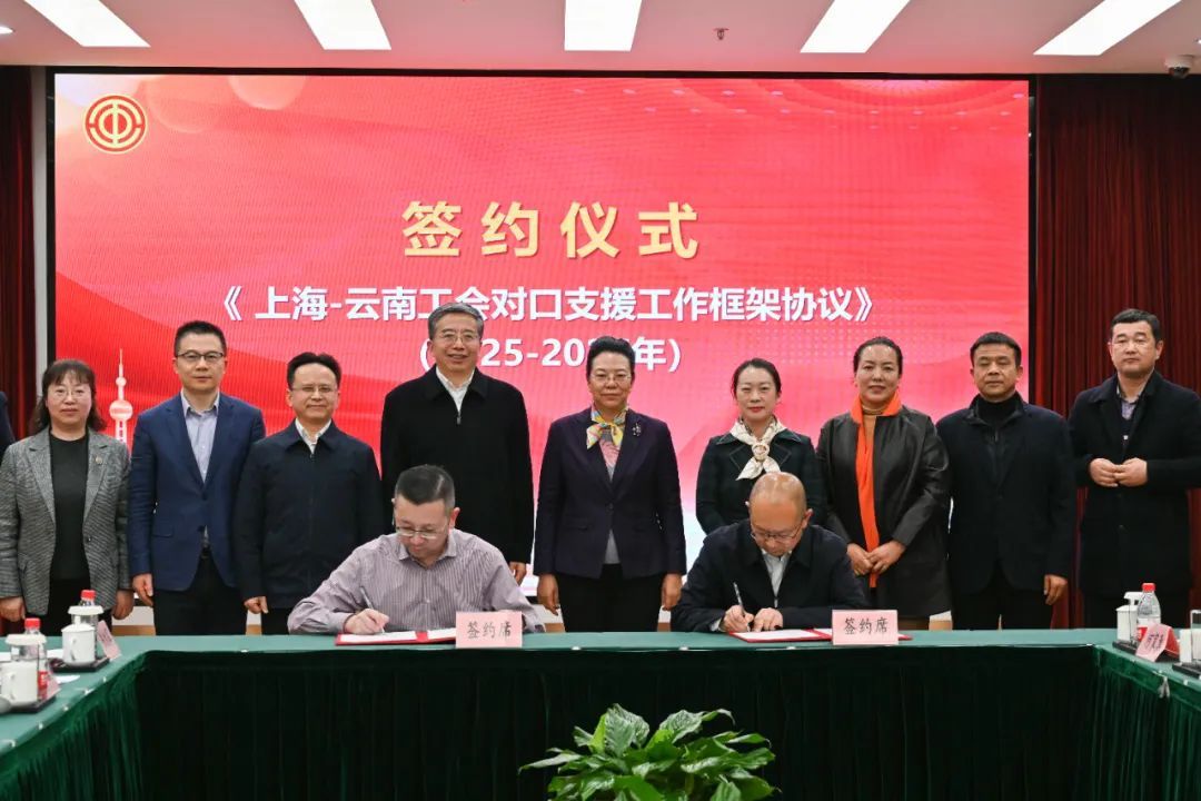 隨后,兩地工會(huì)簽訂《上海—云南工會(huì)對(duì)口支援工作框架協(xié)議》。根據(jù)協(xié)議,2025年到2027年,兩地工會(huì)將健全完善對(duì)口支援工作機(jī)制,圍繞“學(xué)習(xí)交流一批、培訓(xùn)扶持一批、愛心幫扶一批、療養(yǎng)合作一批、走訪慰問一批”重點(diǎn)任務(wù),繼續(xù)開展技術(shù)幫扶協(xié)作、工會(huì)干部等人員培訓(xùn)、職工療休養(yǎng)合作、滬滇對(duì)口支援地區(qū)職工“點(diǎn)亮微心愿”、消費(fèi)幫扶對(duì)口支援地區(qū)鄉(xiāng)村振興支持計(jì)劃等項(xiàng)目。