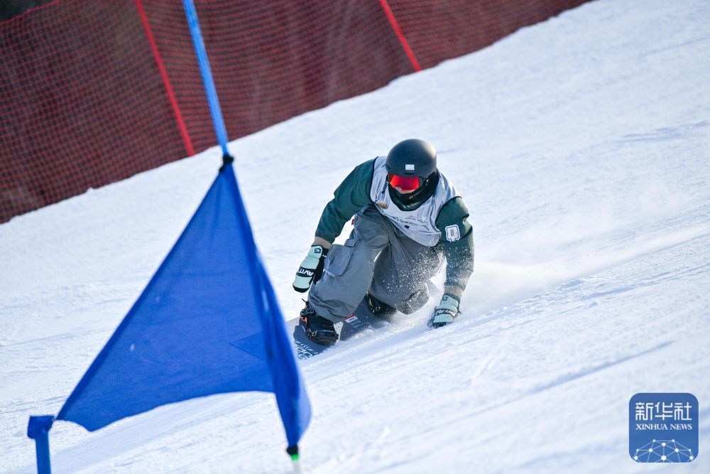 重慶市總工會選手高子堯在單板滑雪男子平行大回轉項目比賽中。