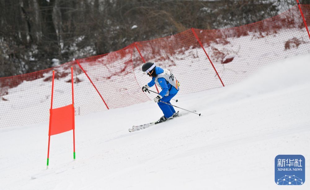 黑龍江省總工會選手譚睿在高山滑雪女子大回轉項目比賽中。