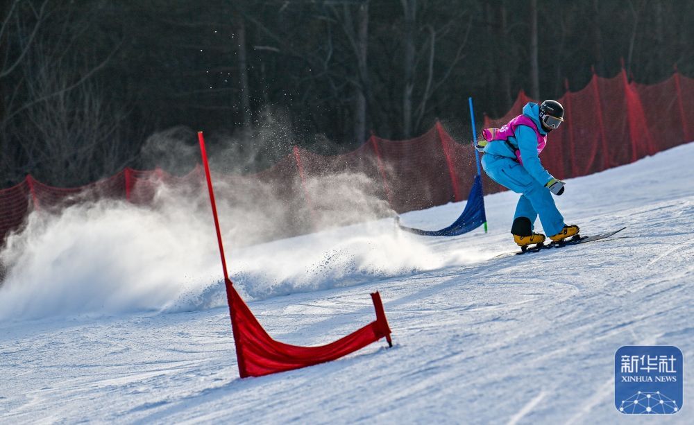 廣東省總工會選手盧星洋在單板滑雪女子平行大回轉項目比賽中。