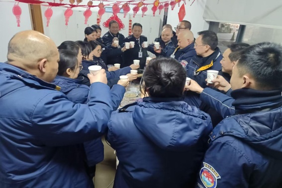 盡管工作繁忙,但大隊領導并沒有忘記為安檢員們送上溫暖的關懷。他們精心準備了年夜飯和慰問品,但由于工作的特殊性,安檢員們只能輪流就餐,始終保持崗位上有人值守。在短暫的用餐時間里,大家圍坐在一起,分享著彼此的故事和祝福,這份簡單而溫馨的團聚,讓他們的心中充滿了溫暖和力量。