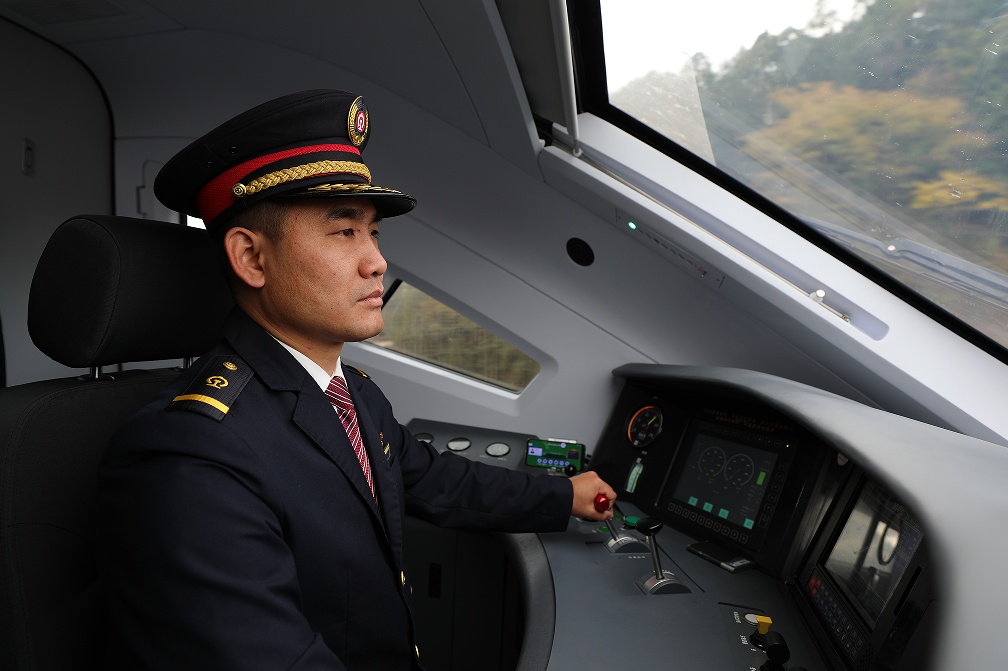 13時37分,隨著信號開放、車門關閉,李光登駕駛列車緩緩駛出站臺,穿梭在壯麗的山川之間。盡管窗外風景如畫,但他的目光始終堅定在前方,全神貫注地駕駛列車。