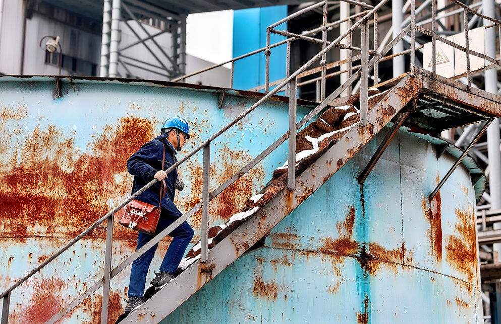新年的大雪覆蓋了整個廠區,室外溫度低至零下6攝氏度。李昌平冒著嚴寒,仔細檢查每一處戶外熱工設備的伴熱情況。他的身影在雪地里若隱若現,但那份對工作的執著和熱愛,卻如同冬日里的一縷陽光,溫暖人心。