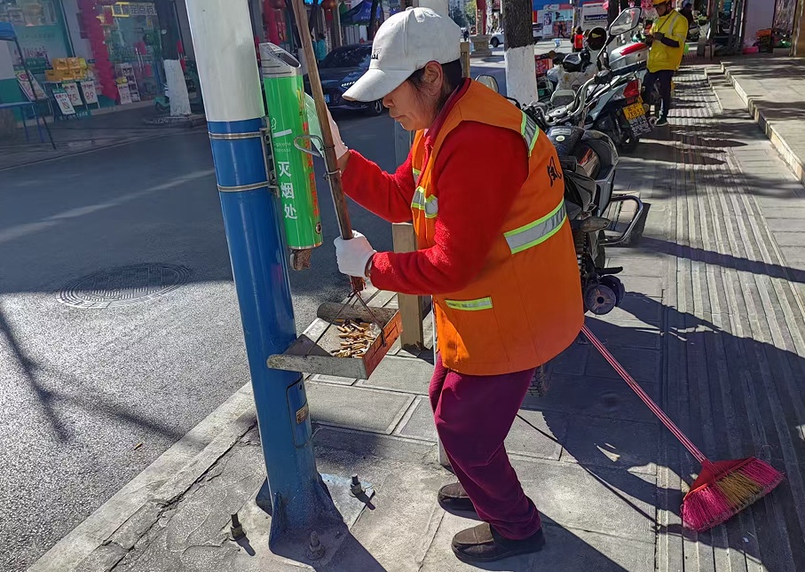春節期間,由于游客增多,垃圾量也隨之激增,段阿姨的工作量比平時大了許多。但她總是毫無怨言:“過年了,大家都忙,我能多干點就多干點。”