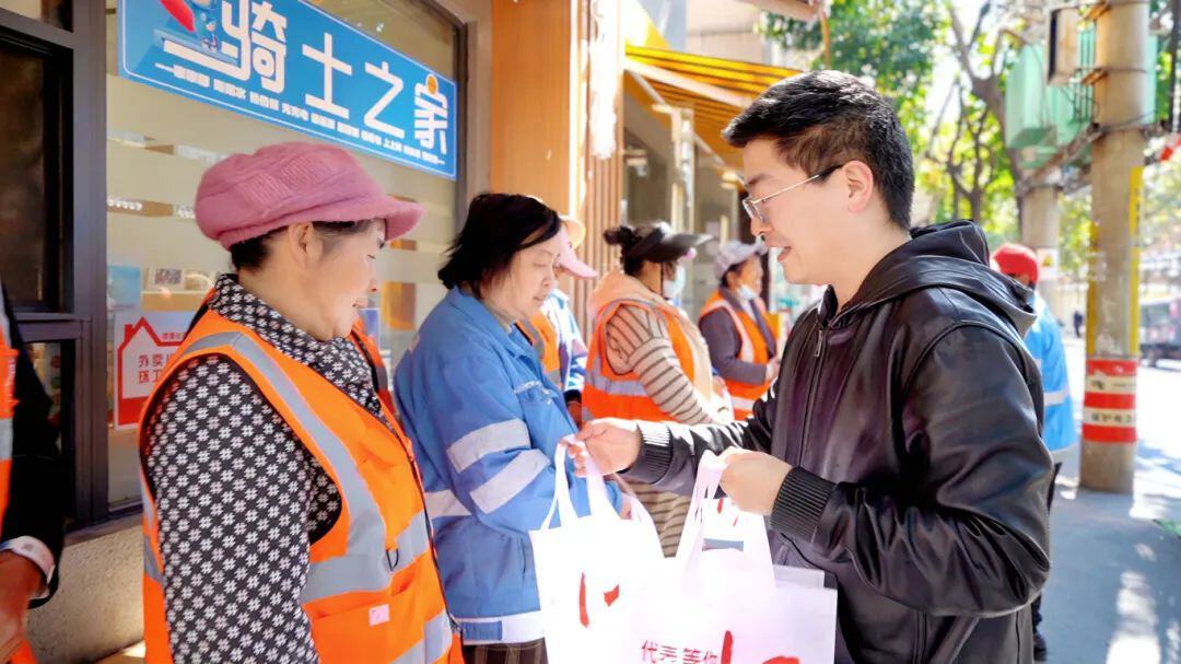 此外,鼓樓街道總工會還對新就業形態勞動者代表進行了慰問,通過他們向奮戰在一線的環衛工人表示深切關懷和問候,并送上節日祝福和工會慰問禮包。
