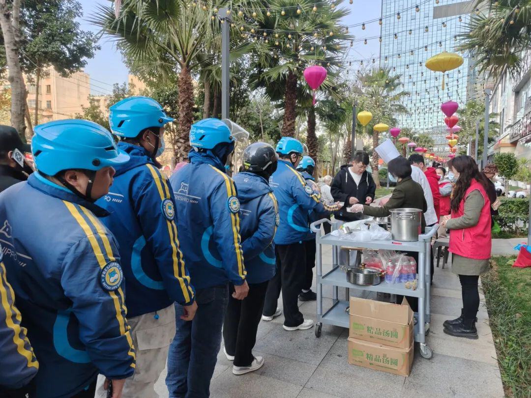 活動當天,志愿者們在文藝路社區戶外勞動者休息驛站,為堅守崗位的外賣小哥、環衛工人送上一碗熱氣騰騰的湯圓,讓他們在忙碌中感受節日的溫暖。