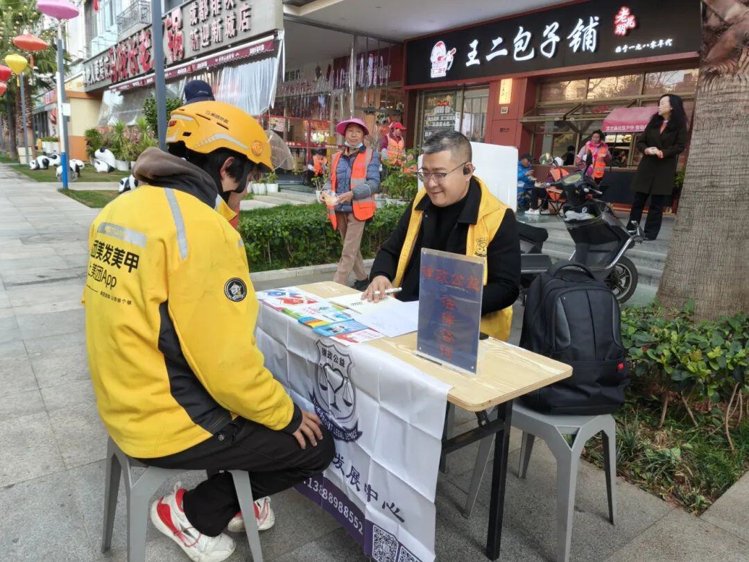 活動現場歡聲笑語不斷,美味的湯圓匯聚成幸福生活的暖流匯入每個外賣小哥、環衛工人心中。盈科律所律師也來到活動現場,為外賣小哥、過往居民提供免費法律咨詢服務。