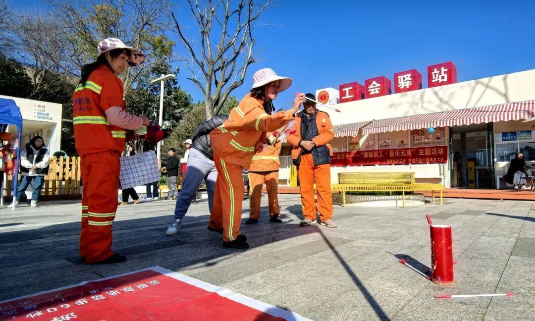 身著工作服的環衛工人們歡聚一堂拉開了元宵游園活動的帷幕。投壺、套圈、夾彈珠……各個游戲攤位前圍滿了參與的職工,大家全神貫注,在游戲中大展身手,現場加油聲、歡笑聲此起彼伏?!斑@些游園活動太有趣了,好久沒有這么放松地玩過了。我們每天都在為了城市的整潔努力,今天在工會驛站參加這樣的活動,覺得自己的付出很值得。”環衛大姐王云霞笑著說。