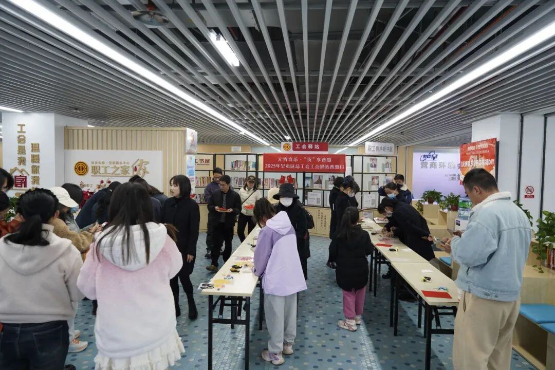 “能夠來參加工會驛站的活動,我心里很開心,很激動!特別是在元宵節這樣特別的日子,更加感受到工會帶給我們的溫暖?!痹颇辖òl城市服務發展有限公司環衛工人張奕建激動地說,在現場,他不僅抽中了職工消費券,還通過元宵扭蛋盲盒,獲得了一份蛇年裝飾品?!斑@次的活動舉辦得很有新意!”現場,來參加活動“元宵拓福”的職工小孫正向身邊的朋友展示著新拓好的“元寶小蛇”。2月12日,“元宵喜樂·‘貢’享普惠”2025年呈貢區總工會工會驛站普惠日活動在呈貢區政務服務中心工會驛站熱鬧上演。