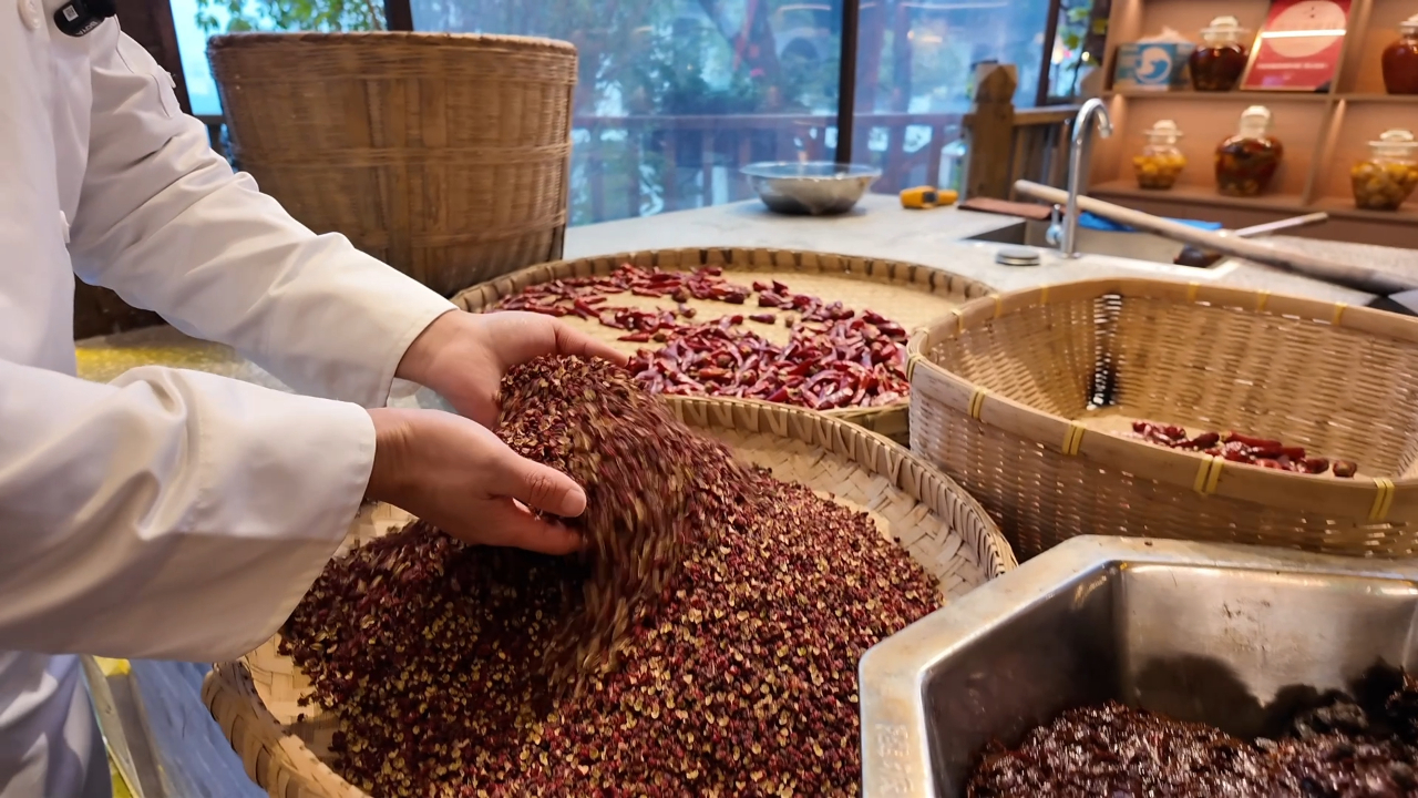 如何讓火鍋擁有“靈魂”,董政霖說,關(guān)鍵在于底料炒制。“每一味調(diào)料都有自己的‘個(gè)性’,干辣椒、花椒、八角、桂皮、香葉、豆瓣醬、牛油等十幾種材料,每一味都要精心挑選,炒制過程中的火候、油溫也至關(guān)重要。”