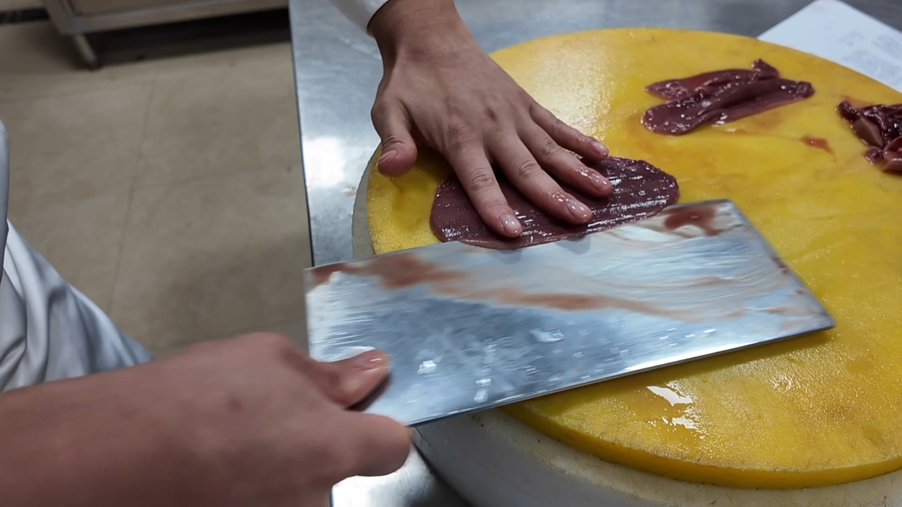 他舉例道,要想讓顧客吃到脆嫩的腰片,要用平刀片刀法將其切割至僅1毫米的薄片;又如黃喉的刀法處理,他會(huì)采用獨(dú)特的佛手花刀切割方法,大小一致方便快速成熟,既美觀又能保證其口感……在董政霖看來,這種精細(xì)的處理方式,也是為了給顧客呈現(xiàn)最好的美味。