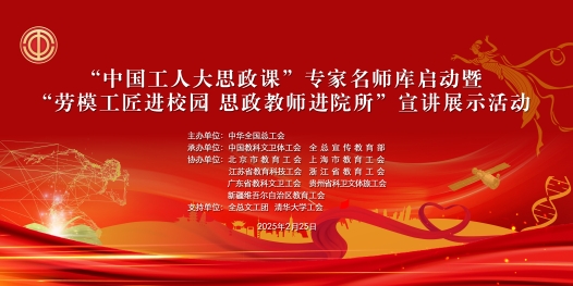 直播回顧丨“中國工人大思政課”專家名師庫啟動暨“勞模工匠進校園 思政教師進院所”宣講展示活動?????為貫徹習近平總書記關于大力弘揚勞模精神、勞動精神、工匠精神和加強新時代學校思政課建設的重要指示,落實全總“559”工作部署,強化產業職工思想政治引領,創新打造“中國工人大思政課”,在以中國式現代化全面推進強國建設、民族復興偉業中發揮工會組織作用,2月25日15:00,“中國工人大思政課”專家名師庫啟動暨“勞模工匠進校園 思政教師進院所”宣講展示活動在清華大學舉辦。中工網首頁、微博、視頻號同步直播。