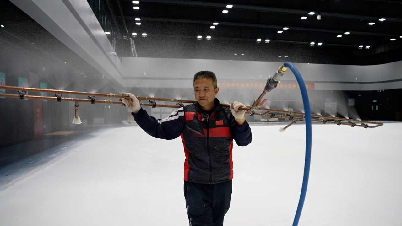 “濕度波動會讓冰面結(jié)霜,水質(zhì)偏差可能導(dǎo)致冰層開裂,每一個變量都得鎖死在標(biāo)準(zhǔn)范圍內(nèi)。”他帶著團隊反復(fù)調(diào)試設(shè)備,每一個動作都凝結(jié)著多年經(jīng)驗。