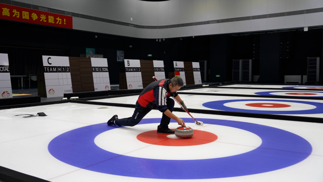 在即將完工的冰壺賽道上,劉博強俯身輕觸冰面,用指尖感知著每一寸細微變化。作為中國冰壺國家隊首席制冰師,他深知這項運動的“零容錯”法則:噴白冰層時,需手持專業(yè)設(shè)備勻速后退,以極薄的水霧反復(fù)疊加十?dāng)?shù)次,直至冰面呈現(xiàn)出玉石般的勻凈質(zhì)地;定位大本營同心圓時,T線、底線的精準(zhǔn)度必須嚴絲合縫,“錯一毫,冰壺軌跡就會偏離戰(zhàn)術(shù)設(shè)計”。