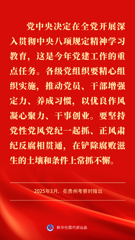 中央黨的建設(shè)工作領(lǐng)導(dǎo)小組近日召開會(huì)議指出,黨中央決定,自2025年全國(guó)兩會(huì)后至7月在全黨開展深入貫徹中央八項(xiàng)規(guī)定精神學(xué)習(xí)教育。