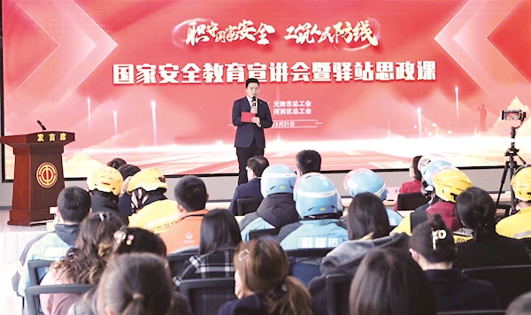 活動開場播放了新修訂的反間諜法和公民舉報危害國家安全行為獎勵辦法動畫宣傳片,以生動直觀的方式為與會人員普及國家安全相關法律知識。“現在網絡詐騙層出不窮,大家一定要多加小心,謹防上當受騙……”市勞動模范、市公安局南開分局華苑派出所所長李琨以《預防詐騙 你我同行》為主題,向新就業形態勞動者深入淺出地揭開電信詐騙重重“迷霧”,讓反詐知識入腦入心。市住建委“住建之聲”宣講團成員王瑄,是不久前從天津職工國家安全教育宣講比賽中脫穎而出的獲獎選手,站在工會驛站的“舞臺”上,她聲情并茂為在場聽眾講述著“國家安全,人人有責”的重要性。