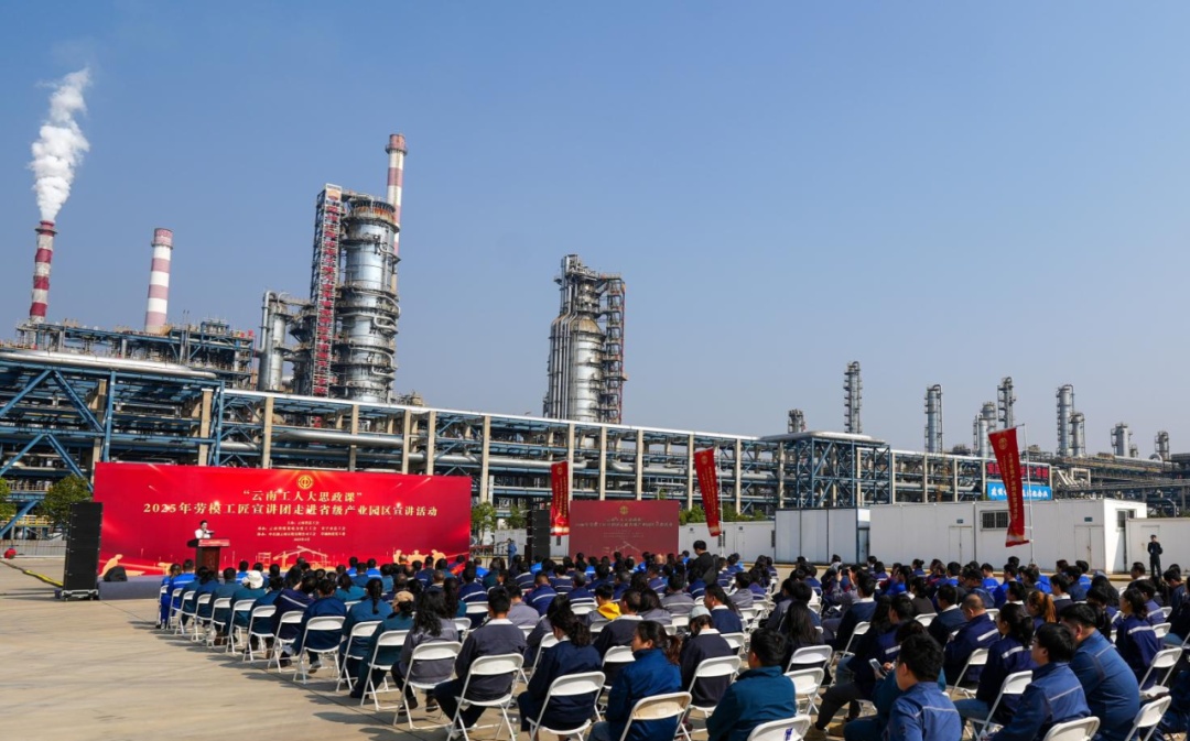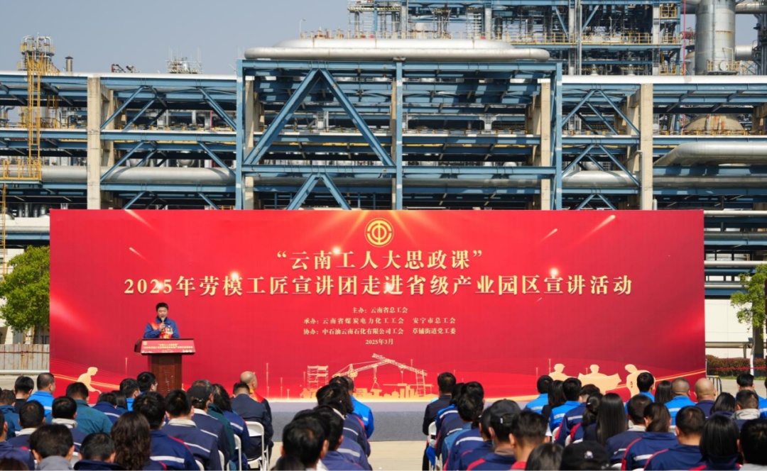 3月28日,云南“中國工人大思政課”2025年勞模工匠宣講團走進省級產業園區宣講活動在安寧草鋪產業園區中石油云南石化有限公司舉辦。來自園區2家國有企業和15家非公企業,180余名產業工人參加。活動由云南省總工會主辦,云南省煤炭電力化工工會、安寧市總工會承辦,中石油云南石化有限公司工會、安寧市草鋪街道黨工委協辦。