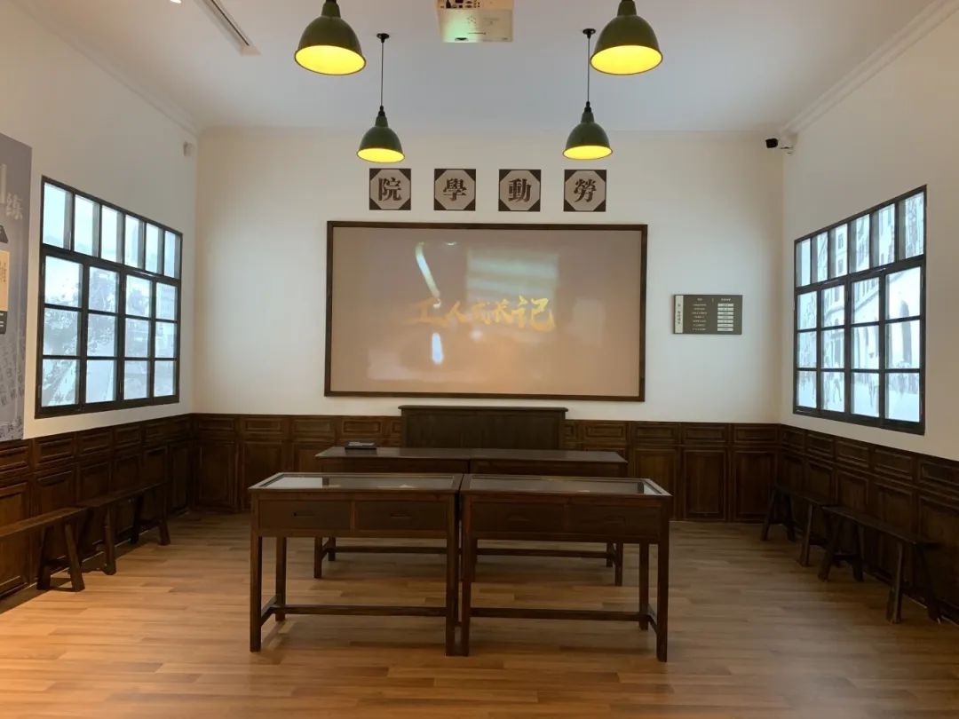 走進中華全國總工會舊址,每步入一個展區,主題場景隨之變換,參觀情緒相應調整,營造出強烈的觀展節奏。觀眾駐足觀看衣物、飯券、車票等文物展品的同時,可通過觸控聯動平臺,深入了解文物背后的故事。文物展示融入工人夜校的課堂陳設中,構成多元素疊加的立體敘事空間。觀眾靜坐課堂,彷佛置身歷史現場,能夠身臨其境地感受工人夜校的歷史氛圍。新科技與視覺技術的應用,大大豐富了觀眾的體驗感和參與感。