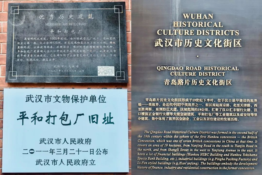 平和打包廠,始建于1905年,是早期英商在漢口租界開設最早的棉花打包廠之一,該廠以棉花打包為主,兼打包牛羊皮、羽毛、豬鬃、苧麻等貨物。其紅磚廠房內聚集了上千名中國工人。
