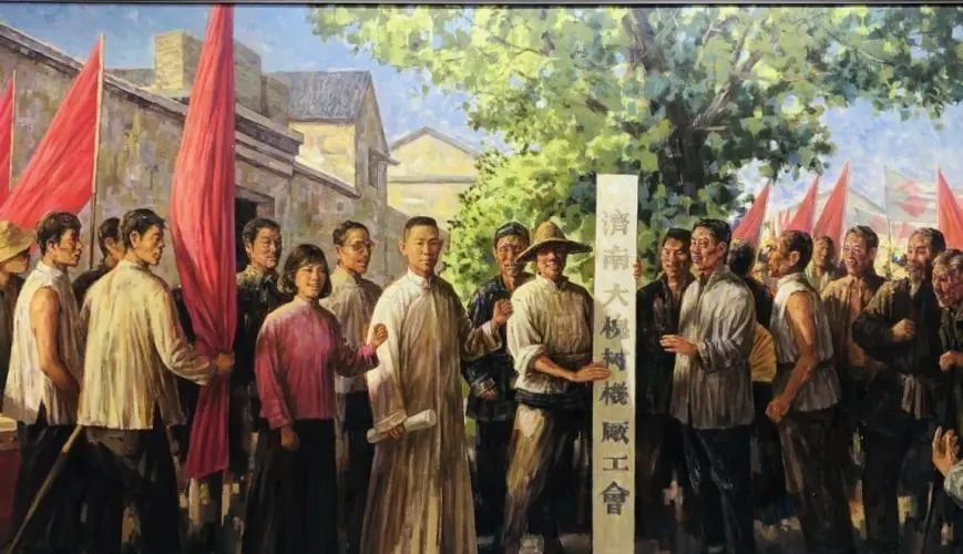 當上海小沙渡的紡織機聲與北京長辛店的火車汽笛南北呼應,濟南大槐樹機廠的鐵錘敲響了齊魯工運的覺醒強音。王盡美、王荷波、羅章龍等革命先驅曾在這里播撒革命火種,發(fā)動開展工人運動。