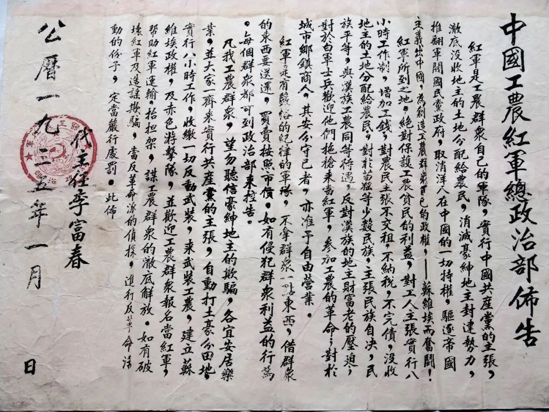 紅軍總政治部布告