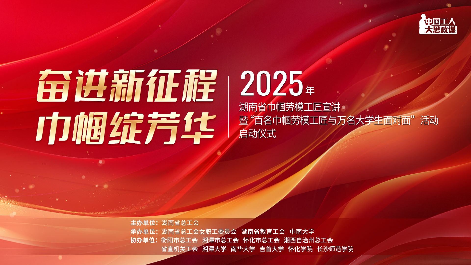 直播回顧|奮進新征程 巾幗綻芳華 2025年湖南省巾幗勞模工匠宣講暨“百名巾幗勞模工匠與萬名大學生面對面”活動??????為深入學習領會習近平新時代中國特色社會主義思想和黨的二十屆三中全會精神,貫徹落實中央、全總和省委、省總關于深化產業工人隊伍建設改革的部署要求,進一步弘揚勞模精神、勞動精神、工匠精神,湖南省總工會在長沙舉辦“中國工人大思政課”——2025年湖南省巾幗勞模工匠宣講暨“百名巾幗勞模工匠與萬名大學生面對面”活動。4月22日9:00,中工網首頁、微博、視頻號同步播出。