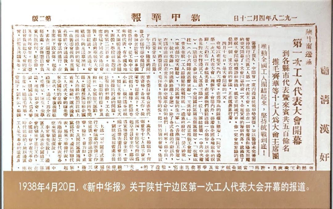 1938年4月17日,陜甘寧邊區總工會籌備委員會在延安召開了邊區工人第一次代表大會,正式建立了陜甘寧邊區總工會。截至1938年10月,陜甘寧邊區已經建有縣工會20個、區工會116個、鄉工會546個、工廠工會7個,全區共有工會會員3.6萬余人。1945年至1946年這一段時間,陜甘寧邊區總工會的工會會員達到將近7萬人。