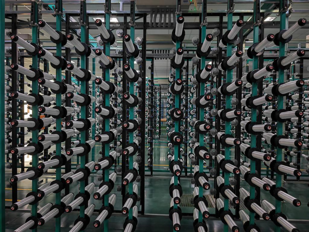 這是2025年3月12日在河南光遠新材料股份有限公司車間拍攝的電子玻纖。新華社記者 劉振坤 攝