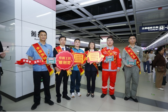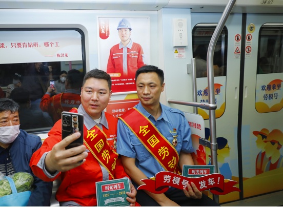 4月29日下午,在“五一”國際勞動節即將到來之際,為慶祝中華全國總工會成立100周年,湖北省總工會聯合武漢市總工會推出“五一”地鐵專列主題宣傳活動,傳承百年工運精神,用特殊禮遇向全國勞動模范和先進工作者致敬。