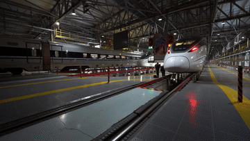 動車進入檢修庫內,工作人員正根據任務計劃進行動車組一級修作業。