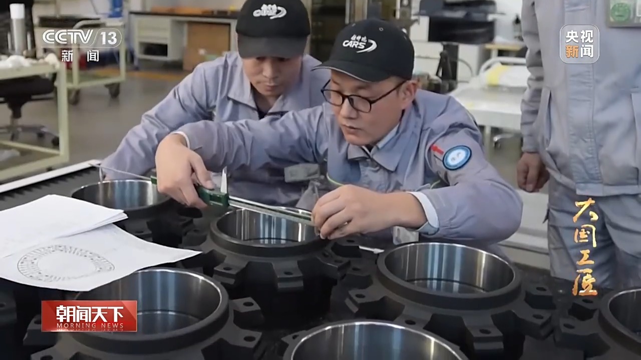 全新材料帶來全新挑戰,從異形刀具的優化與打磨開始,張洪賓無數次修改編程、分析切屑過程中的讓刀現象,調整轉速參數。通過創新弧面加工數控技術,最終,張洪賓把新型楔形銷嚴絲合縫地裝進了CR450動車組樣車的制動夾鉗。