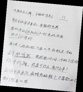 一天,耿紅玲與所長鄧力眾一同走訪轄區群眾鄭某。因鄭某聽力障礙,耿紅玲掏出紙筆,工整寫下“可按時吃藥”“單位可經常來看你”“要按時吃飯”……仔細折好、撫平邊角后,將這張留言條輕輕放入鄭某衣服口袋。