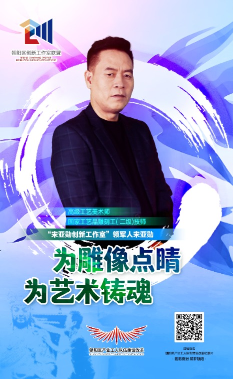 【領軍人】宋亞勛,中國工藝美術協會會員、國家工藝品雕刻工(二級)、高級環境藝術師、河北省工藝美術大師、持證雕塑家、曲陽縣工藝美術學會會長。擅長傳統佛像、人物、園林雕塑的設計與創作,尤其擅長園林景觀中大型水法制作,在挖掘保護并傳承民間工藝美術方面貢獻突出。他先后獲北京市政府“享受政府特殊津貼技師”、北京市朝陽區制造業工會“2016年度崗位能手”、北京市朝陽區高新技術產業工會“2017、2018、2019、2020年度崗位能手”稱號。