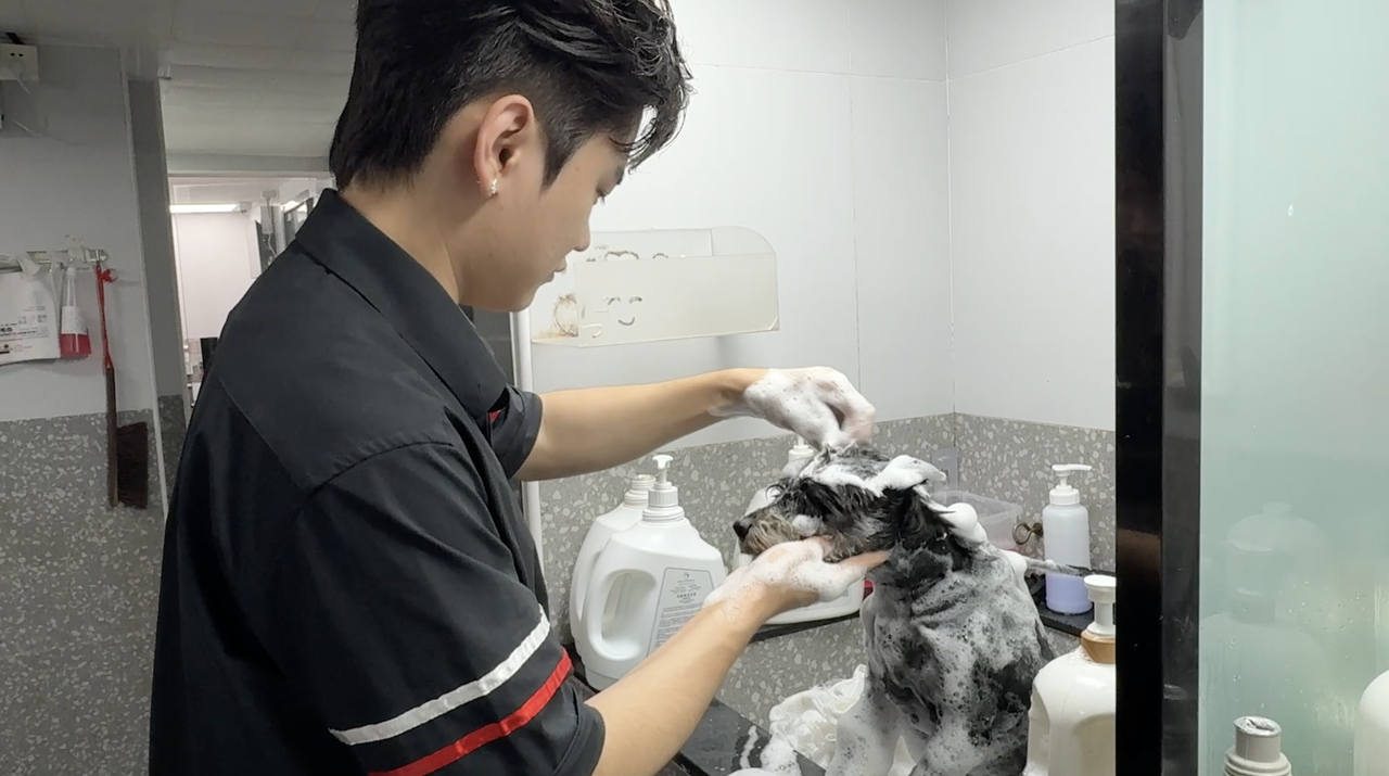 “在工作中,我們會遇到各種性格的狗狗,有的活潑,有的靦腆,也有的容易緊張,這就需要剛接觸它們的時候,要先安撫它們的情緒,讓它們熟悉美容師。也有同事遇到過情緒特別激動的狗狗,會把美容師抓傷、咬傷。不過我們也都有經驗了,也會做好防護措施。”張波說。