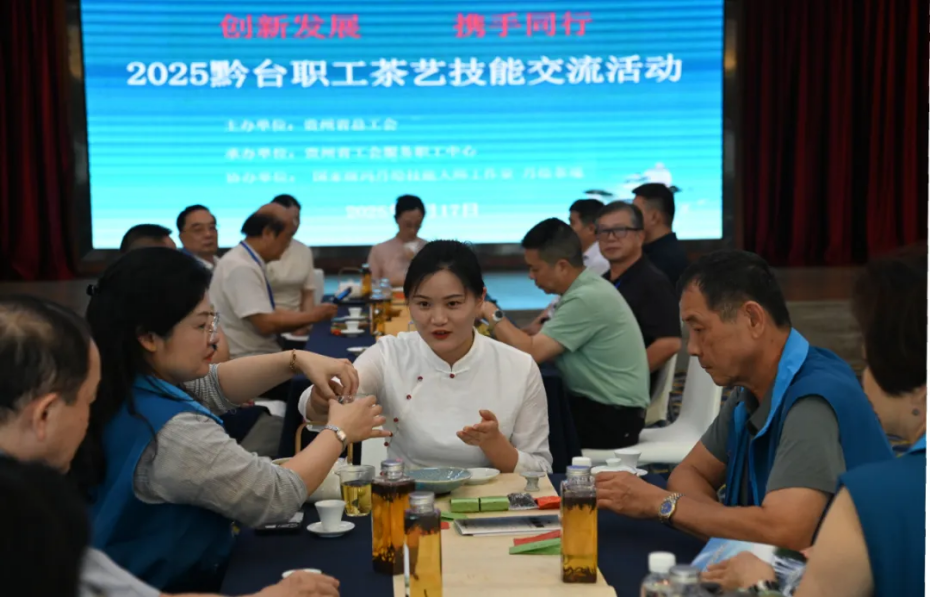 以茶為媒、以技會友。6月17日,以“創新發展、攜手同行”為主題的2025黔臺職工茶藝技能研討交流暨茶文化品鑒活動在貴陽拉開帷幕,來自黔臺兩地的60名職工齊聚一堂,同臺切磋茶技藝,共揚中華茶文化。