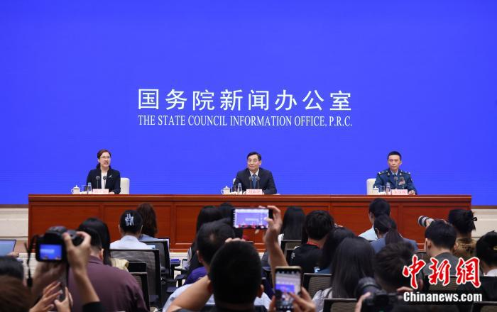6月24日,中國國務院新聞辦公室在北京舉行新聞發布會,中央宣傳部分管日常工作的副部長胡和平,閱兵領導小組辦公室副主任、中央軍委聯合參謀部作戰局少將副局長吳澤棵介紹中國人民抗日戰爭暨世界反法西斯戰爭勝利80周年紀念活動總體安排,并答記者問。 中新社記者 楊可佳 攝