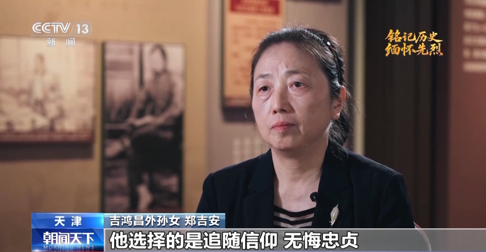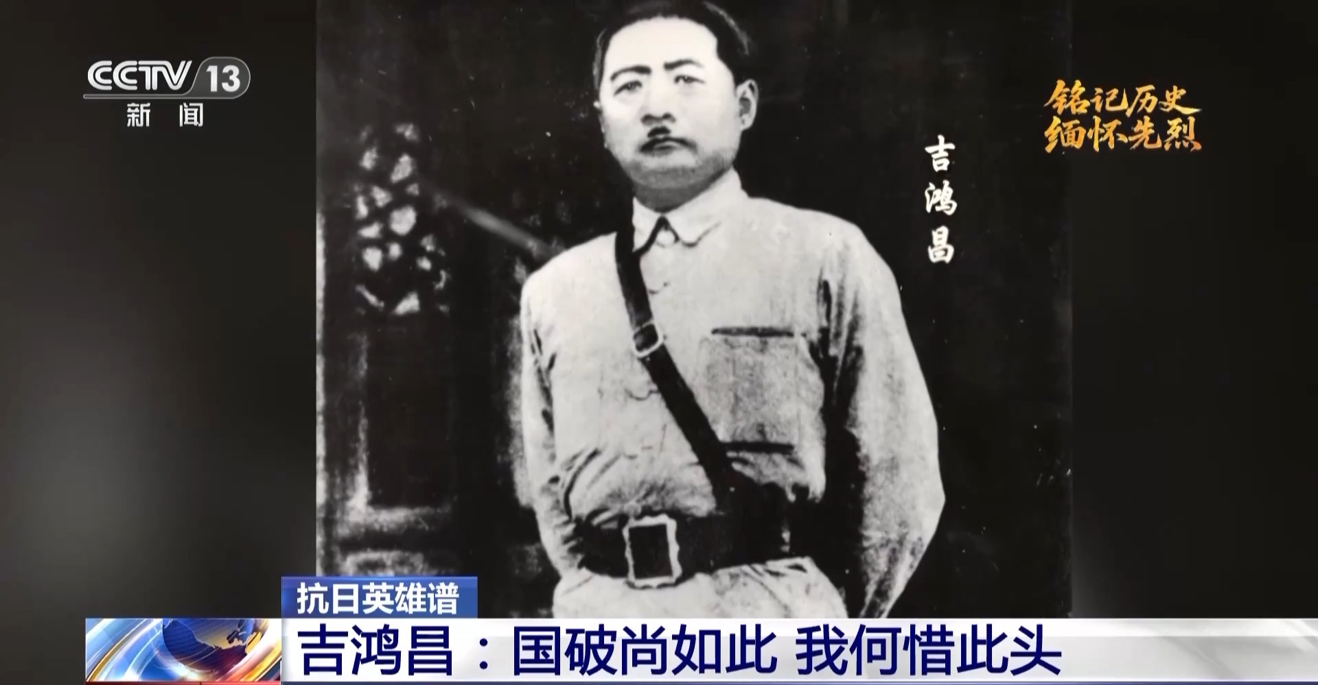 吉鴻昌外孫女 鄭吉安:他命令行刑的特務,給我搬一把椅子來,我為抗日而死,死也不能倒下。他從容地坐在椅子上,這個時候行刑的特務又繞到了他的身后,他厲聲喝道,站到我面前來,我為抗日而死,死得光明正大,絕不能背后挨槍。