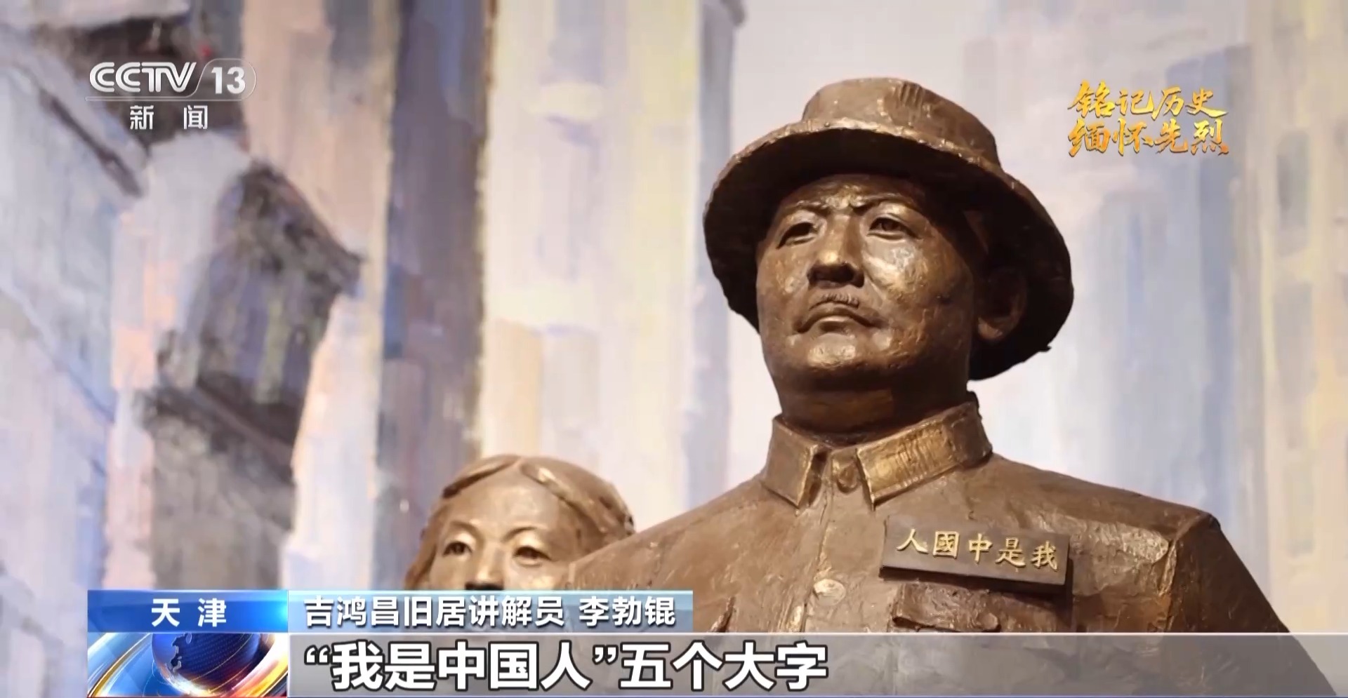 天津吉鴻昌舊居講解員李勃錕:吉鴻昌在美國前往郵局想往國內郵寄包裹時,郵局的工作人員竟故意聲稱不知有中國這個國家,吉鴻昌將軍十分憤怒。回到住所之后,將軍找來一塊木牌,在上面工整地刻下了“我是中國人”五個大字,并將其佩戴在胸前,昂首挺胸地出入于大庭廣眾之中。