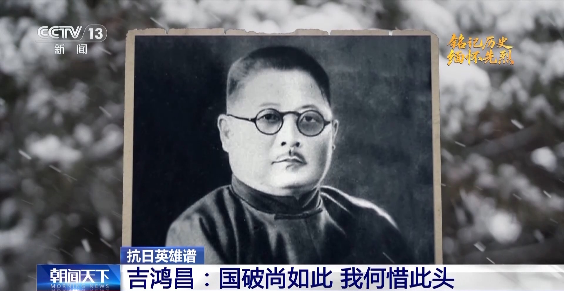 1934年11月24日,蔣介石密令將吉鴻昌“就地槍決”。這一天漫天飛雪,吉鴻昌從容走向刑場,他在雪地上寫下——“恨不抗日死,留作今日羞。國破尚如此,我何惜此頭!”表達了抗日未成身先死的遺憾和為國捐軀的壯志豪情。