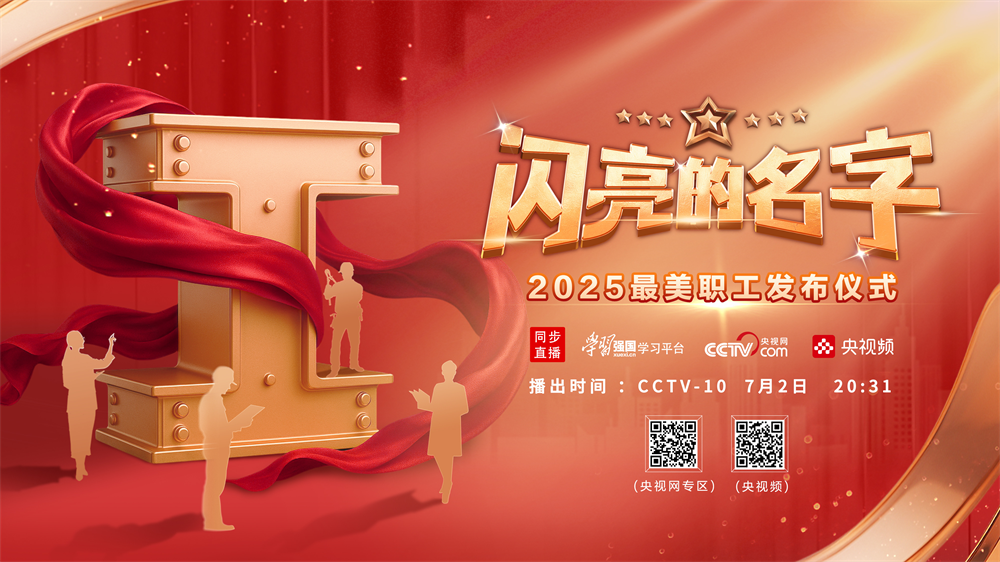 《閃亮的名字-2025最美職工發(fā)布儀式》將在中央廣播電視總臺央視科教頻道(CCTV-10)7月2日20:31播出。播出期間央視頻、學(xué)習(xí)強國、央視網(wǎng)、全國總工會官微視頻號、中工網(wǎng)、“職工之家”APP、工人日報客戶端及視頻號等新媒體平臺當(dāng)日共同播出。