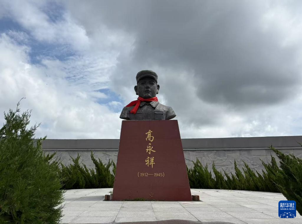 這是7月6日在甘肅省平?jīng)鍪徐`臺縣星火鄉(xiāng)王家莊村廣場拍攝的高永祥半身像。新華社記者 刁慧琳 攝
