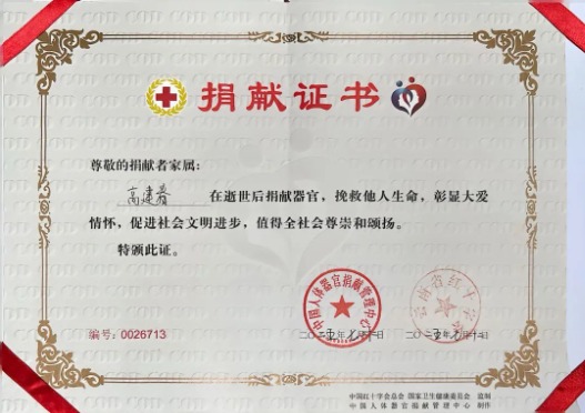 捐獻延續生命,大愛溫暖人間。手術后,高建春捐獻的器官在當天即被成功移植給三位適配患者,為他們點燃了生的希望。他的生命,正以另一種崇高的方式延續。