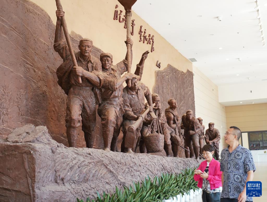 這是南泥灣大生產紀念館內的雕塑作品(7月29日攝)。新華社記者 樊雨晴 攝