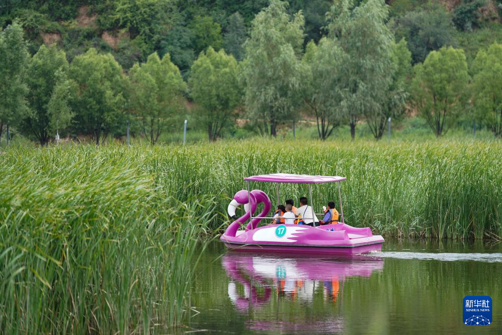 游客在南泥灣國家濕地公園內游玩(7月29日攝)。新華社記者 樊雨晴 攝