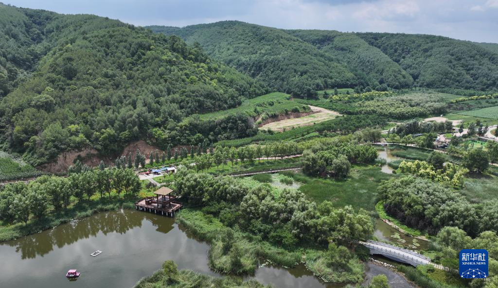 南泥灣國家濕地公園一隅(7月29日攝,無人機照片)。新華社記者 樊雨晴 攝