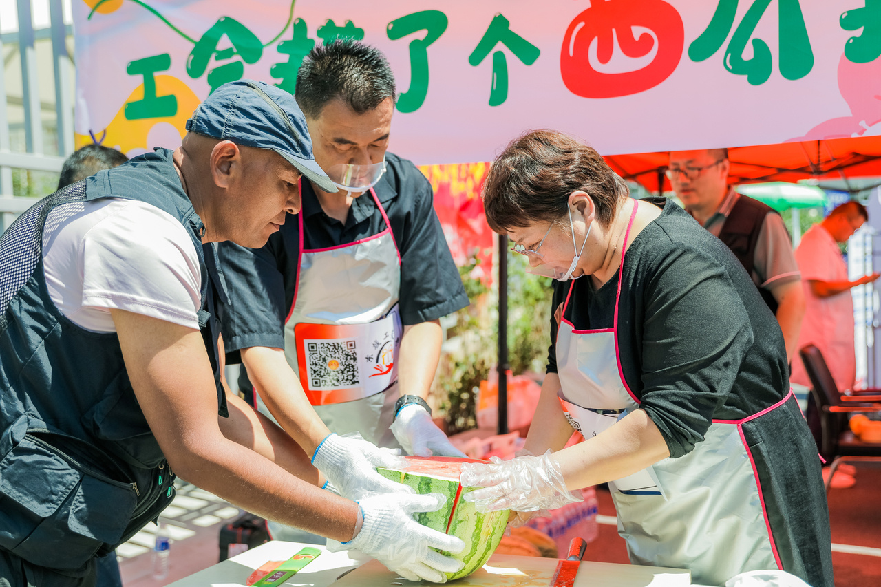 7月28日,青海省西寧市城東區(qū)總工會聯(lián)合西寧市總宣教部、城東區(qū)委統(tǒng)戰(zhàn)部、城東區(qū)人大常委會機(jī)關(guān),在八一路工會驛站及火車站周邊區(qū)域同步啟動2025年“關(guān)愛職工?夏送清涼”活動,創(chuàng)新推出“工會涼棚”項目,將傳統(tǒng)西瓜攤升級為集即時解暑、短暫休憩、信息獲取、情感關(guān)懷、互動交流于一體的戶外勞動者關(guān)愛驛站,為高溫下堅守崗位的各族職工群眾和戶外工作者送去清涼和關(guān)愛。