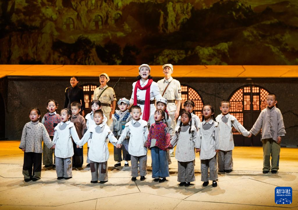 7月29日,演員在延安保育院劇場表演紅色舞臺劇《延安保育院》。新華社記者 樊雨晴 攝