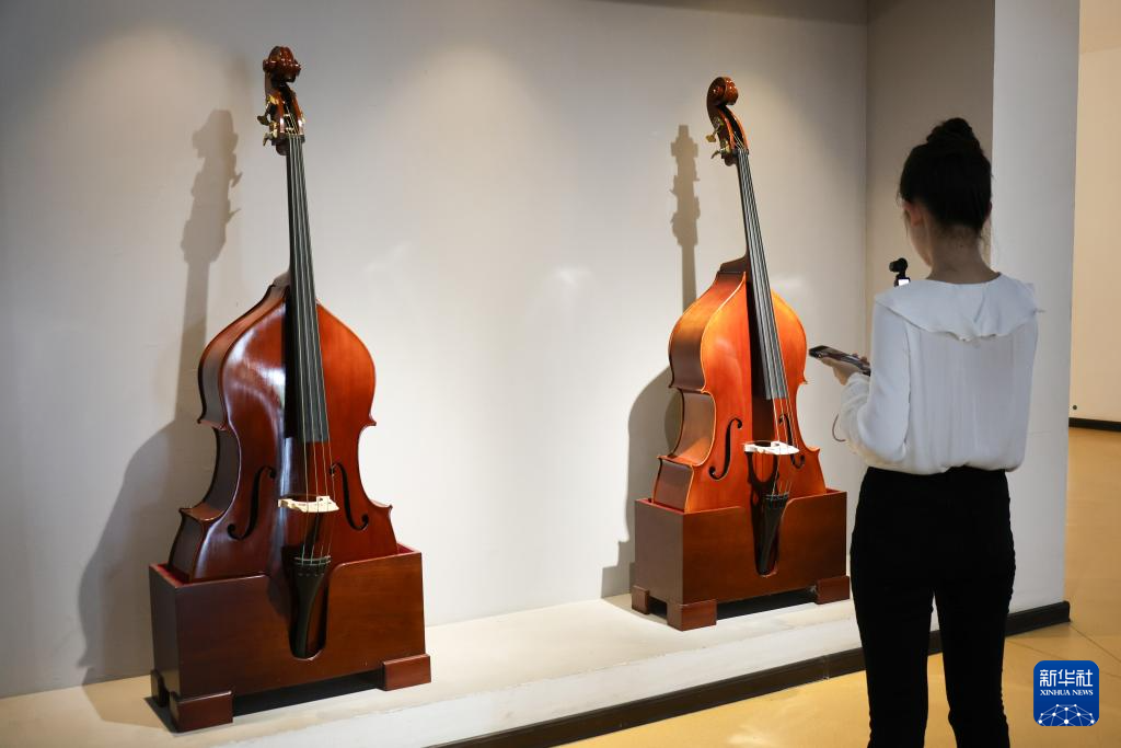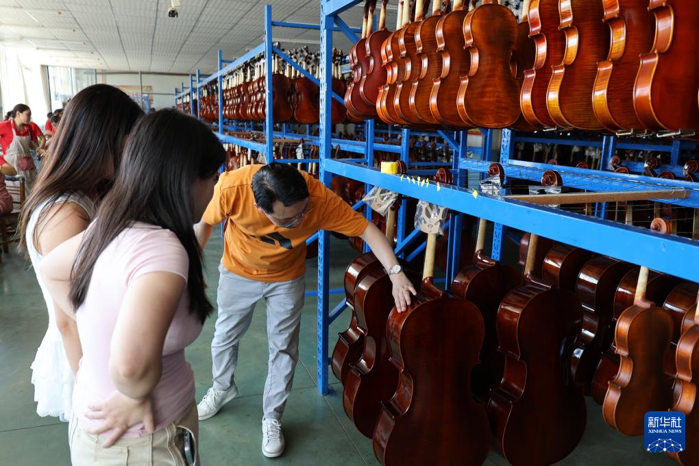 7月24日,在河南省駐馬店市確山縣的確山提琴產業園,游客在一家企業的展館內參觀。新華社記者 朱唯希 攝