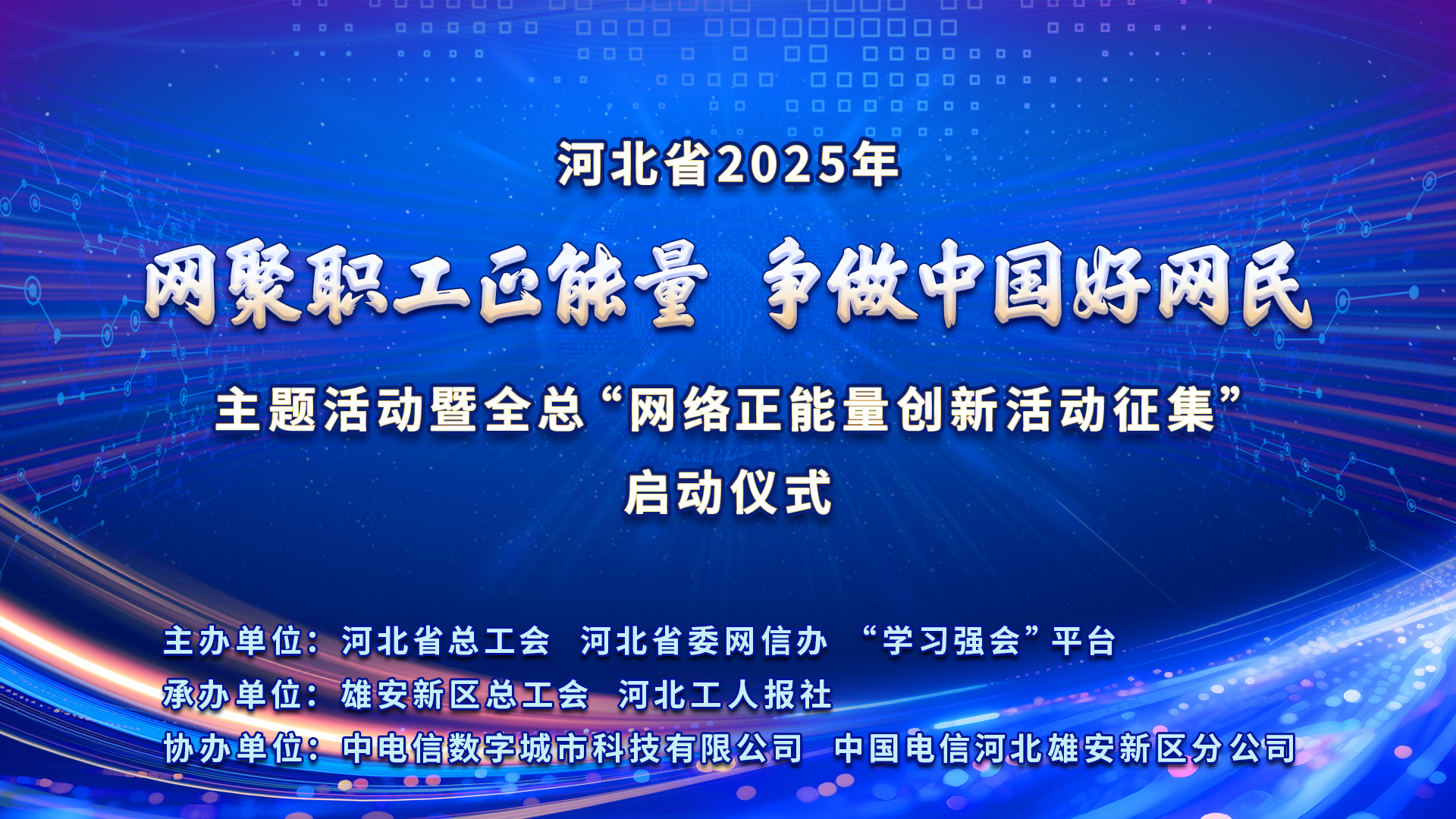 直播回顧|河北省2025年“網(wǎng)聚職工正能量 爭做中國好網(wǎng)民”主題活動暨全國總工會“網(wǎng)聚職工正能量創(chuàng)新活動征集”啟動儀式???????為深入貫徹習(xí)近平總書記關(guān)于網(wǎng)絡(luò)強(qiáng)國的重要思想,落實(shí)中國工會十八大關(guān)于“加強(qiáng)職工網(wǎng)絡(luò)文明建設(shè)”的部署要求,河北省總工會聯(lián)合省委網(wǎng)信辦、“學(xué)習(xí)強(qiáng)會”平臺,以“網(wǎng)聚職工正能量 爭做中國好網(wǎng)民”為主題,通過“網(wǎng)絡(luò)正能量創(chuàng)新活動征集”啟動儀式,凝聚全國職工力量,推動網(wǎng)絡(luò)文明與勞模精神、勞動精神、工匠精神深度融合,營造良好的網(wǎng)絡(luò)文化氛圍,弘揚(yáng)主旋律,傳播正能量,為網(wǎng)絡(luò)文明建設(shè)貢獻(xiàn)河北職工的智慧和力量。啟動儀式于2025年8月7日15:00在河北省雄安新區(qū)舉行,中工網(wǎng)首頁、微博、抖音號同步播出,歡迎廣大職工網(wǎng)友在線收看活動直播!
