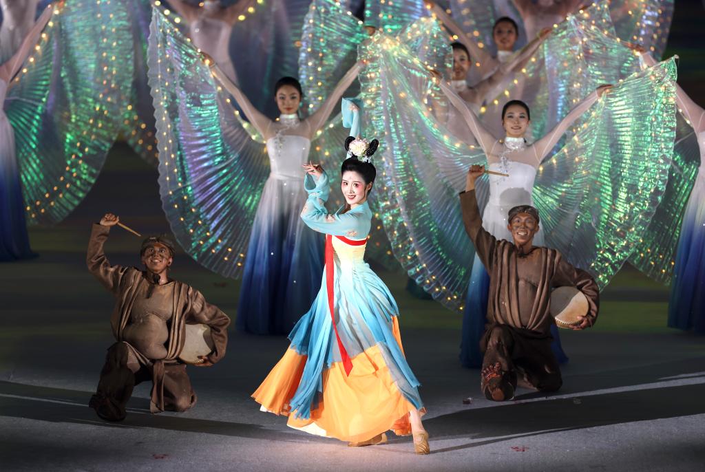 8月7日,演員在開幕式現場表演。新華社記者 陳益宸 攝